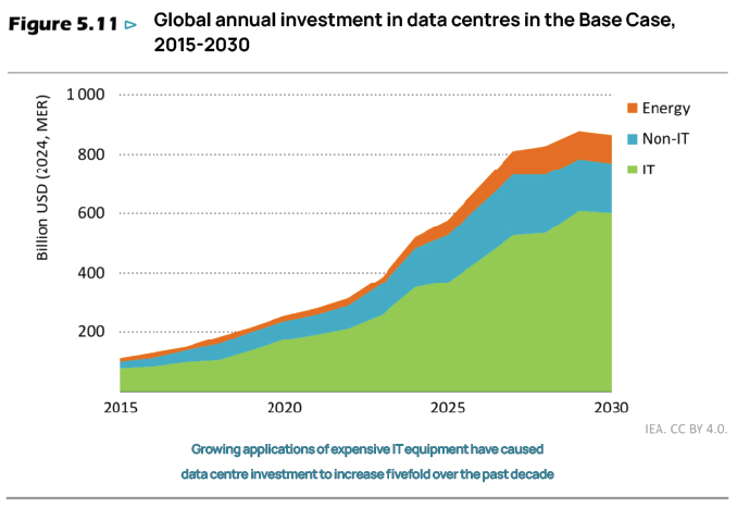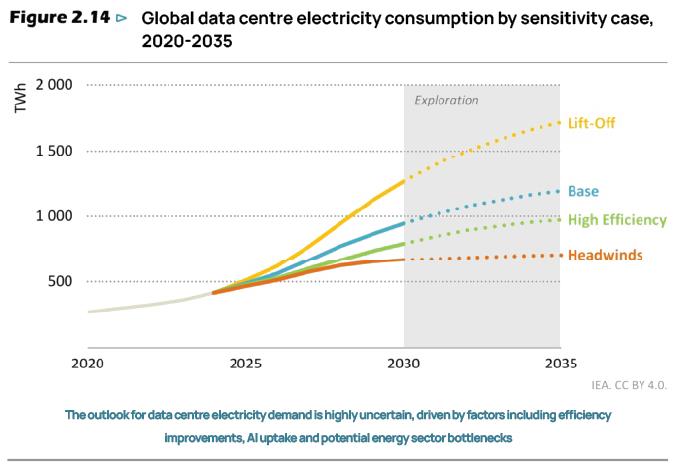This isn’t just gradual growth. The IEA warns that electricity demand from data centers is set to more than double by 2030, reaching 1,050 TWh. This figure is higher than the entire current energy consumption of Japan. In the IEA’s base scenario, by 2035, consumption could hit 1,300 TWh. To give you a more concrete idea, a single AI data center can use as much energy as 100,000 homes. The largest ones under construction are projected to use 20 times more, putting them on par with massive industrial plants like aluminum smelters or steel mills.